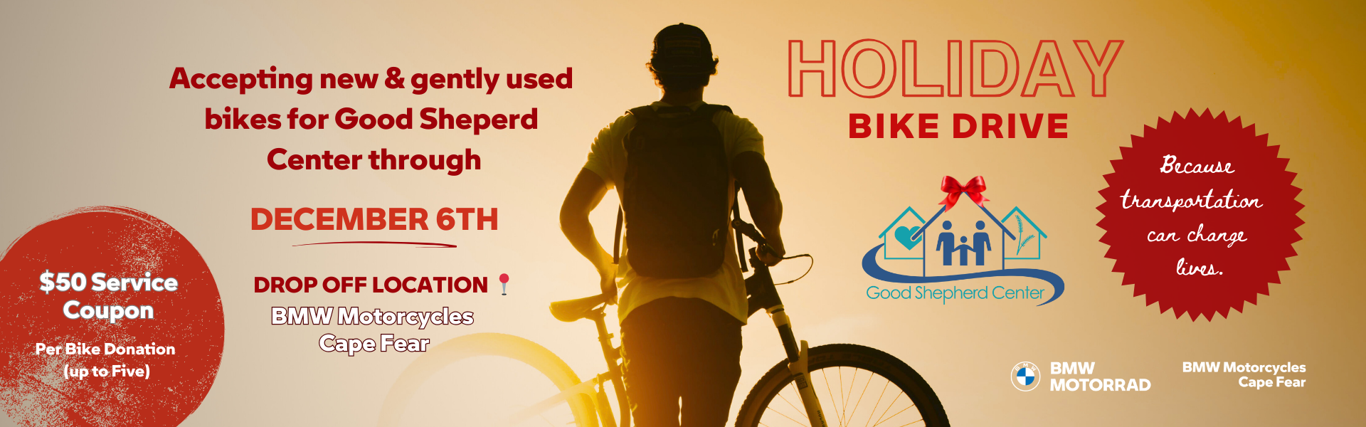 Donate a new, gently used or refurbished bicycle to help us get to our goal of providing transportation for 50 adults under the care of the Good Shepherd Center.