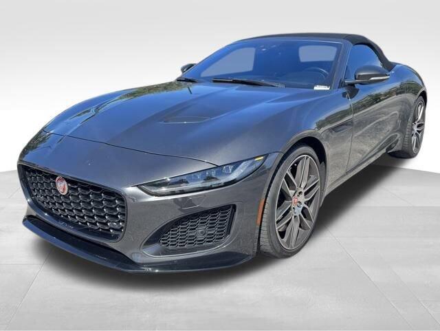 Certified. Carpathian Gray Premium Metallic 2023 Jaguar F-TYPE P450 RWD 8-Speed Automatic 5.0L V8 Supercharged CARFAX One-Owner. Clean CARFAX. Jaguar Approved Certified Pre-Owned Certified, 12-Way Heated & Cooled Electric Memory Front Seats, Auto-Dimming Heated Door Mirrors w/Memory, Black Exterior Pack, Blind Spot Assist, Blind Spot Assist Pack, Climate Pack, Extended Leather Upgrade, Gloss Black Exterior Badges, Gloss Black Fender Vents, Gloss Black Front Splitter, Gloss Black Grille Surround, Gloss Black Rear Valance & Venturi, Gloss Black Rollover Protection Bars, Heated Steering Wheel, Heated Windscreen, Illuminated Metal Treadplates w/Brand-Name Script, Interior Luxury Pack, Keyless Entry, Premium Cabin Lighting, Radio: Meridian Surround Sound System, Rear Traffic Monitor, Red Brake Calipers, Two-Zone Climate Control, Wheels: 20 6 Split-Spoke Style 6003, Wind Deflector, 4-Wheel Disc Brakes, ABS brakes, Adaptive suspension, Air Conditioning, Alloy wheels, AM/FM radio: SiriusXM, Apple CarPlay/Android Auto, Auto High-beam Headlights, Auto-dimming Rear-View mirror, Automatic temperature control, Brake assist, Bumpers: body-color, Convertible roof lining, Delay-off headlights, Driver door bin, Driver vanity mirror, Dual front impact airbags, Dual front side impact airbags, Electronic Stability Control, Emergency communication system: Remote SOS Emergency Call, Exterior Parking Camera Rear, Four wheel independent suspension, Front anti-roll bar, Front Bucket Seats, Front Center Armrest, Front reading lights, Fully automatic headlights, Glass rear window, Grained Leather & Suedecloth Seating Surfaces, Heated door mirrors, Illuminated entry, Integrated roll-over protection, Leather Shift Knob, Low tire pressure warning, Navigation System, Occupant sensing airbag, Outside temperature display, Overhead console, Panic alarm, Passenger door bin, Passenger vanity mirror, Power convertible roof, Power door mirrors, Power driver seat, Power passenger seat, Power steering, Power windows, Radio data system, Rain sensing wipers, Rear anti-roll bar, Rear fog lights, Rear window defroster, Remote keyless entry, Security system, Speed control, Speed-sensing steering, Spoiler, Sport 6-Way Electric Front Seats, Steering wheel mounted audio controls, Tachometer, Telescoping steering wheel, Tilt steering wheel, Traction control, Trip computer, Turn signal indicator mirrors, Variably intermittent wipers, 12-Way Heated & Cooled Electric Memory Front Seats, Auto-Dimming Heated Door Mirrors w/Memory, Black Exterior Pack, Blind Spot Assist, Blind Spot Assist Pack, Climate Pack, Extended Leather Upgrade, Gloss Black Exterior Badges, Gloss Black Fender Vents, Gloss Black Front Splitter, Gloss Black Grille Surround, Gloss Black Rear Valance & Venturi, Gloss Black Rollover Protection Bars, Heated Steering Wheel, Heated Windscreen, Illuminated Metal Treadplates w/Brand-Name Script, Interior Luxury Pack, Keyless Entry, Premium Cabin Lighting, Radio: Meridian Surround Sound System, Rear Traffic Monitor, Red Brake Calipers, Two-Zone Climate Control, Wheels: 20 6 Split-Spoke Style 6003, Wind Deflector.Odometer is 2969 miles below market average!Jaguar Approved Certified Pre-Owned Details:* Roadside Assistance* Warranty Deductible: $0* Limited Warranty: one year / unlimited miles or two years / 100,000 miles, whichever comes first* Transferable Warranty* 165 Point Inspection* Vehicle History* Limited Warranty: 12 Month/Unlimited MileJaguar Land Rover Cape Fear in Wilmington, NC treats the needs of each individual customer with paramount concern. We know that you have high expectations, and as a car dealer we enjoy the challenge of meeting and exceeding those standards each and every time. Allow us to demonstrate our commitment to excellence! Our experienced sales staff is eager to share its knowledge and enthusiasm with you. We encourage you to browse our online inventory, schedule a t